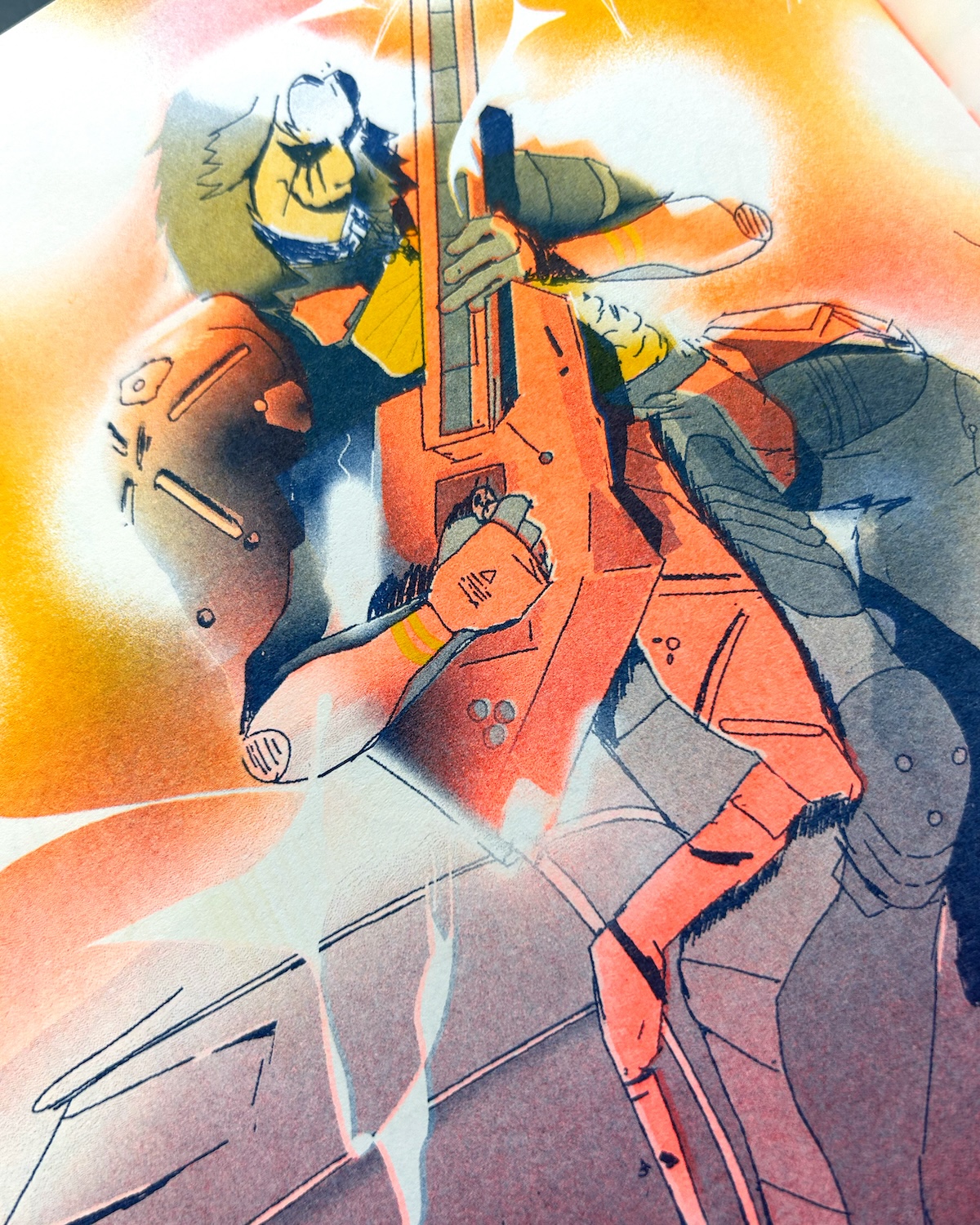 2 color Risograph print: Blue & Orange