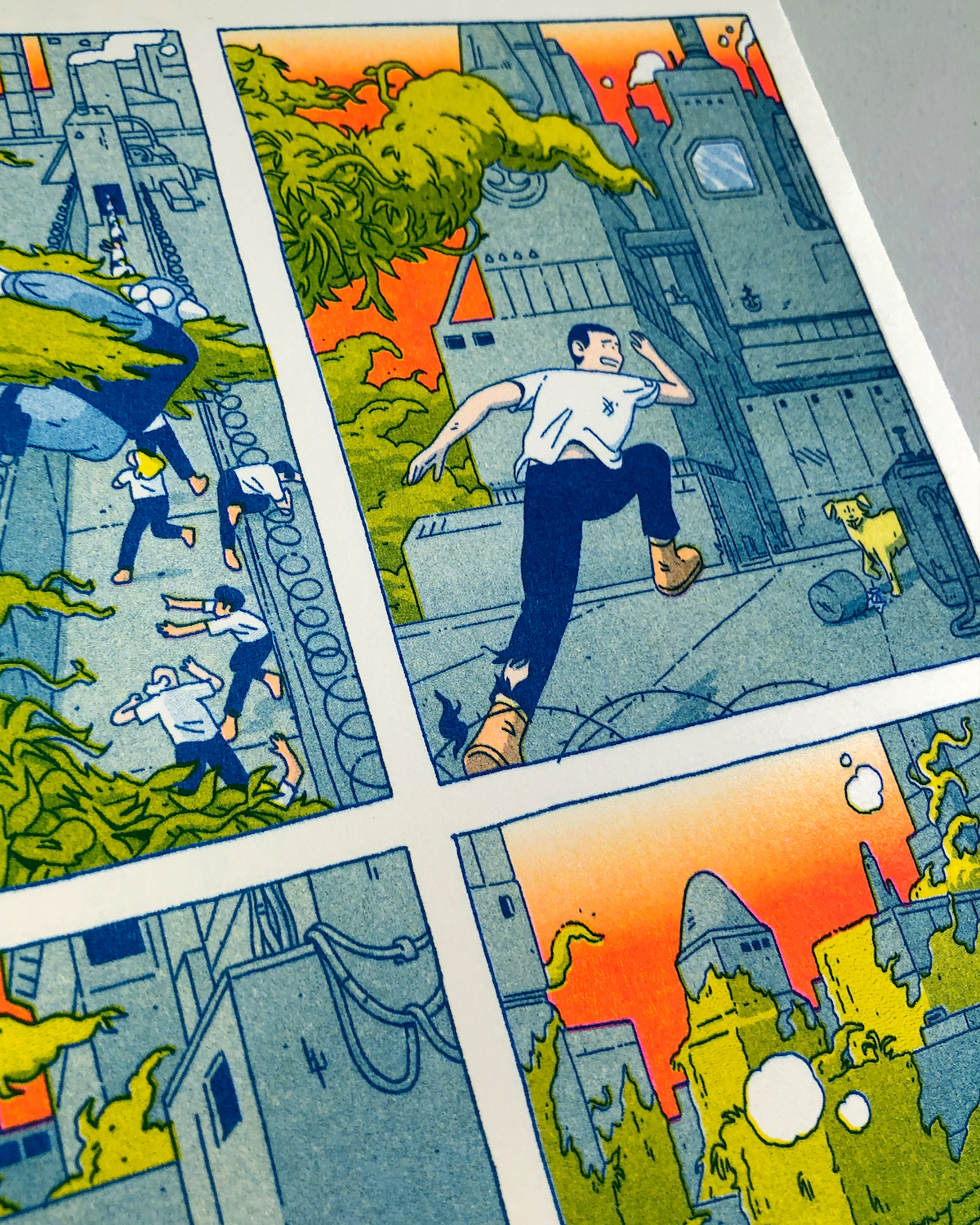 *Risograph printing is a stencil based process that produces slight variations in registration and color from print to print. Each print is unique.