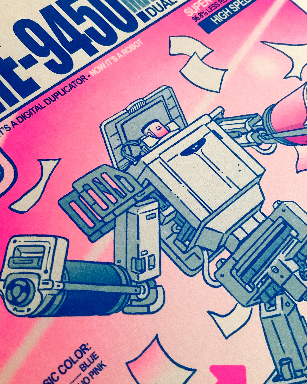 2 color Risograph print: Blue & Fluorescent Pink